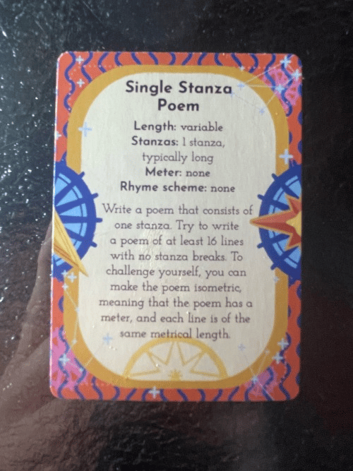 (A single stanza poem can be a great way to juxtapose many disparate elements together—not unlike a busy city street.)